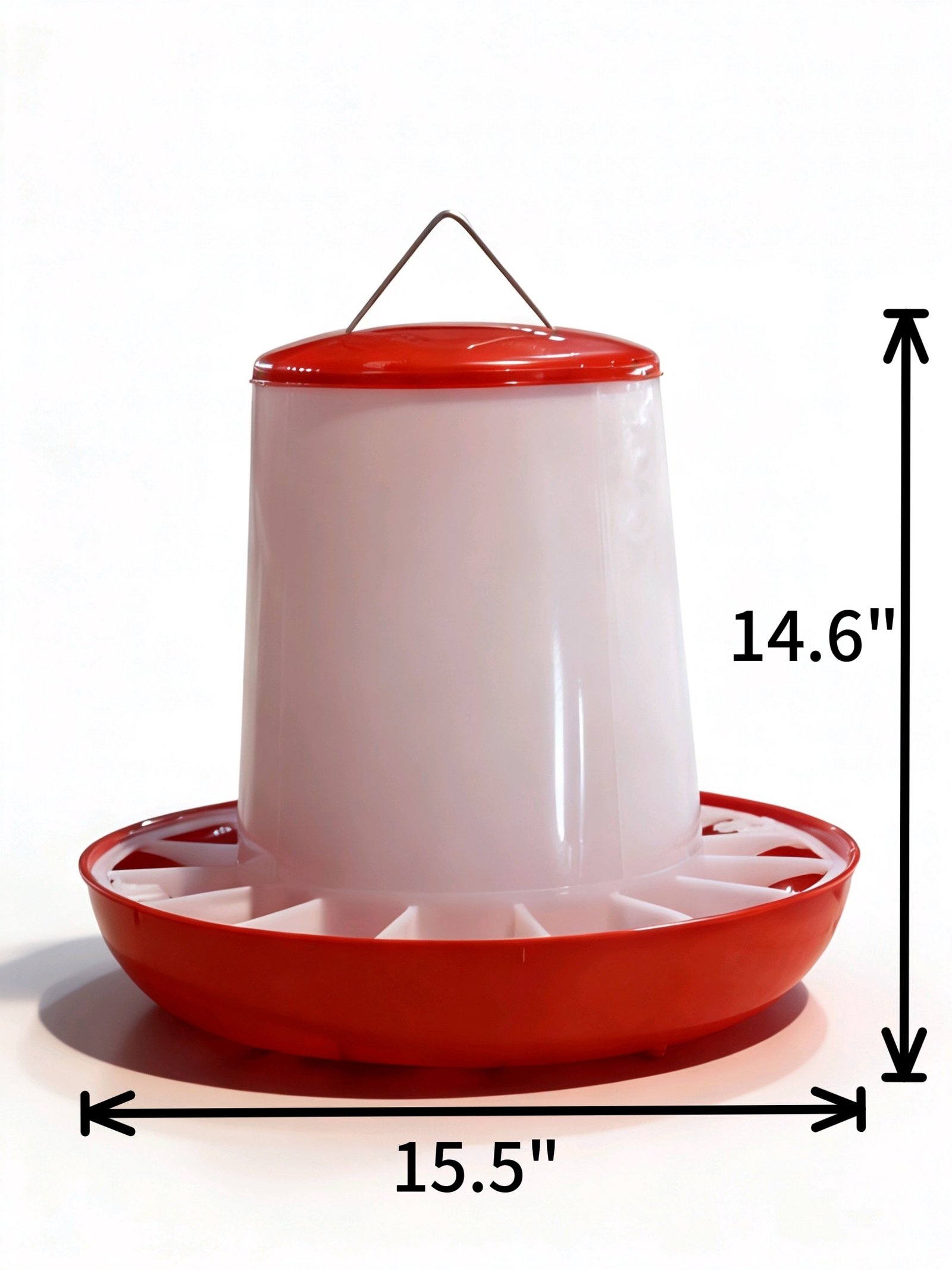 With a 15.5-inch wide base and 14.6-inch height, this feeder provides excellent stability while allowing chickens easy access to feed. The circular feeding tray helps distribute feed evenly and minimizes waste.